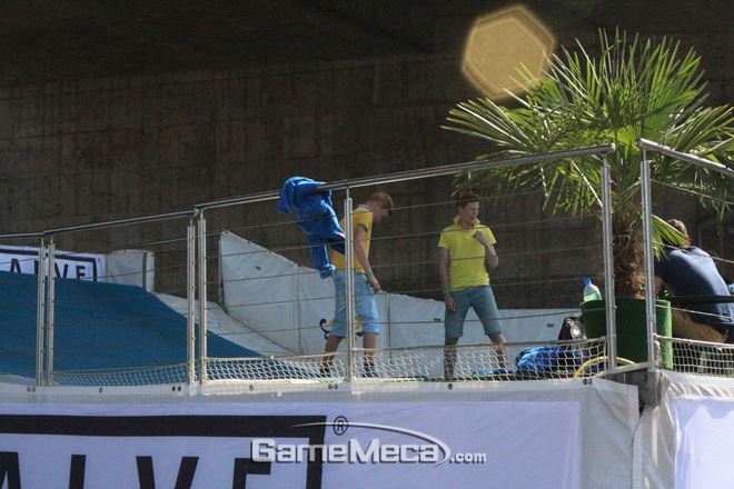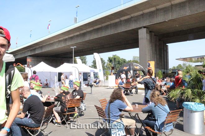 여기 혹시 '차이나조이' 아닌가 싶을 정도로 많은 관람객이 왔는데요. 다만 다른 점은 관람객들이 게임을 즐기고, 쉴 수 있는 충분한 공간과 실외 놀이 공간이 준비되어 있다는 점입니다. 단순히 실내에서 즐기는 오락뿐 아니라 실외에서 충분히 햇빛을 맞으며 광합성(?)을 즐기고 발리볼, 혹은 클라이밍 등을 즐길 수 있는 야외 공간을 살펴보았습니다.