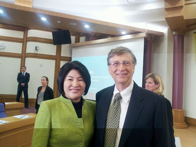 ▲ 손인춘 의원(좌)와 마이크로소프트 전 CEO 빌 게이츠 (사진 출처: 손인춘 의원 홈페이지)