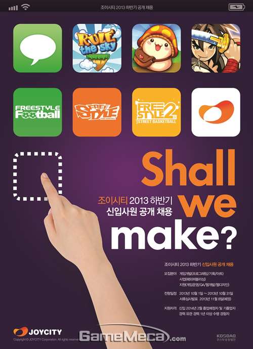 ▲ 2013년 하반기 신입 및 경력사원 공개채용하는 조이시티 (사진 제공: 조이시티)