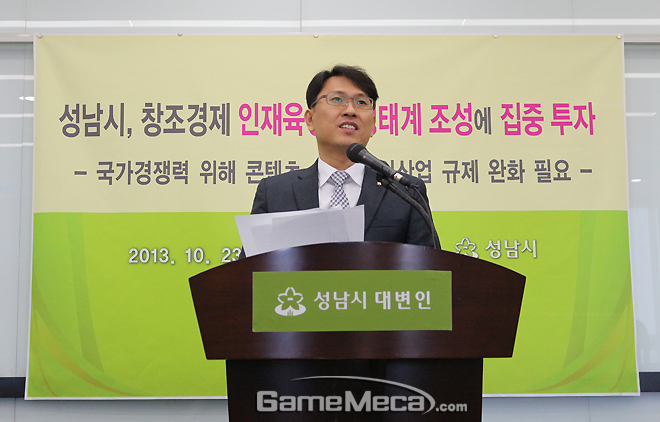 성남시는 22일 성남시청에서 진행된 대변인 브리핑을 통해 게임정책에 대한 국회와 정부의 입장차이로 인한 혼란을 지적하고, 시의 향후 게임산업 육성계획을 발표했다. 지난 1월 손인춘 게임규제법이 발의된 당시에도 관련 브리핑을 열어 게임에 대한 과도한 규제가 지나치다는 입장을 표한 성남시는 이번에도 지자체 중 유일하게 게임산업을 지지하겠다는 의지를 전하며 업계의 이목을 집중시켰다.