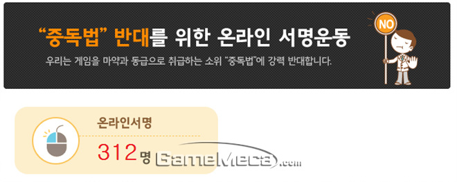 ▲ 한국인터넷디지털엔터테인먼트협회에서 시작한 4대중독법 반대 서명운동