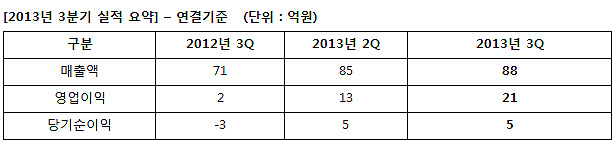 ▲ 와이디온라인 2013년 3분기 실적 요약