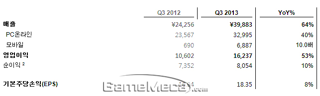 ▲ 넥슨 2013년 3분기 재무 성과 (자료제공: 넥슨)