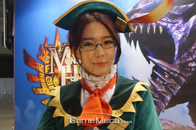 ▲ 한국닌텐도 '몬스터헌터 4' 부스 모델, 게임 속 헌터로 변신했다