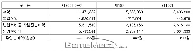 이 같은 호실적은 지난 7월 19일 넥슨코리아와 '테일즈위버' 독점 이용권 부여 10년 연장 계약에 합의함에 따라, 계약금 70억 원이 반영된 결과다. 70억 원의 계약금을 제외한 분기 매출은 44억 원으로, 이 역시 전분기 대비 488%, 전기 대비 5% 상승한 액수다.