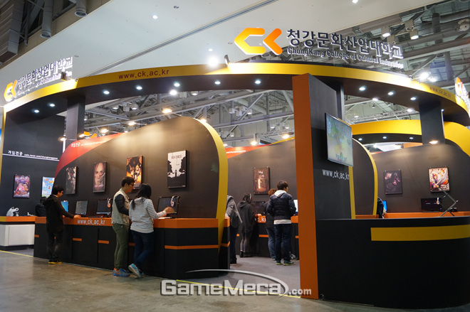 ▲ 학생들의 다양한 작품 시연대가 설치된 청강문화산업대학교 부스