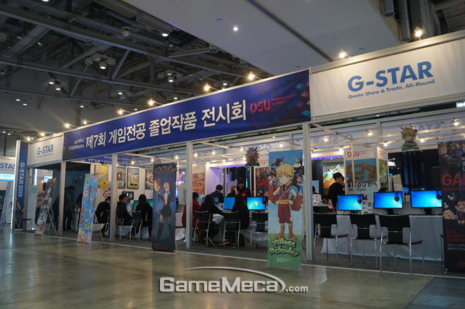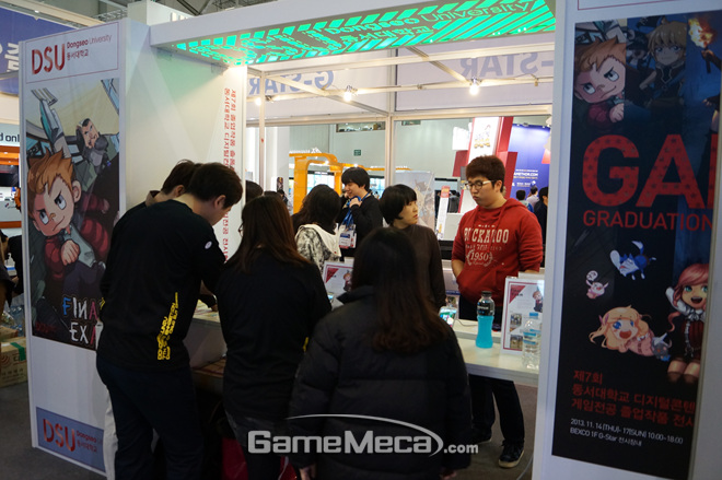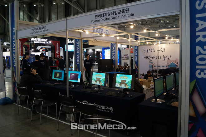 부산 벡스코에서 총 4일간의 여정으로 지스타 2013이 시작됐다. 지스타의 볼거리는 국내외 대표 게임업체들의 신작과 시연, 하드웨어 그리고 푸짐한 경품이 걸린 다양한 이벤트 등이 메인지만, 여기에 미래 스타 게임개발자가 되기 위해 공부 중인 교육생들의 열정이 담긴 부스도 빼놓을 수 없는 곳이다.