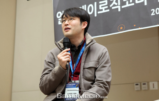 ▲ 모바일게임 사업발표회에 참석한 엘엔케이로직코리아 남택원 대표