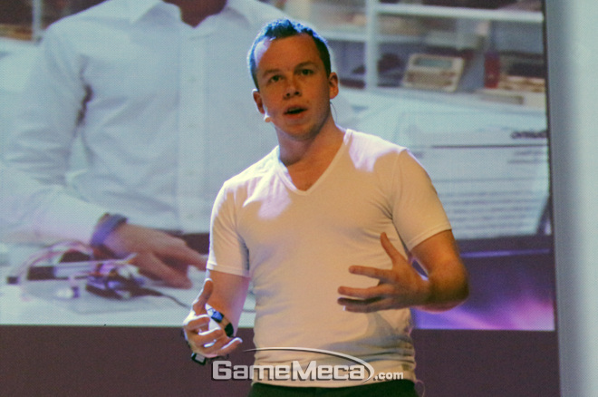 이날 컨퍼런스에서는 최근 각광받고 있는 ‘웨어러블 테크(입을 수 있는 기술, Wearable Tech)’를 접목한 차세대 기기들이 공개됐다. 세션에 등장한 장치는 총 세 가지로, 팔 근육의 움직임을 디지털 신호로 변환하는 팔찌형 기기 ‘마이오(MYO)’와 가상현실을 조성하는 헤드마운트 헤드셋 ‘오큘러스 리프트(Oculus Rift)’, 그리고 착용한 후 일정한 제스처를 하면 음악을 연주할 수 있는 ‘미디 콘트롤러 자켓(Midi Controller Jacket)’이다.
