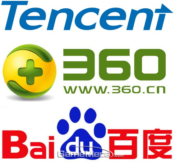 ▲ 중국 모바일플랫폼 Big3 기업, 위쪽부터 텐센트, 360(Quihoo), 바이두