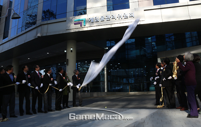 ▲ 현판을 가리고 있던 베일이 벗겨지며, 게임물관리위원회가 본격 출범을 알렸다