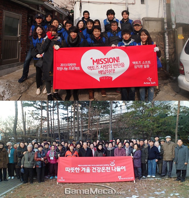액토즈소프트 온라인 사업본부 배성곤 부사장은 “액토즈소프트는 추운 겨울을 맞아 주변 이웃들과 온정을 나누기 위해 다양한 사업을 진행하고 있다. 앞으로 다양한 형태의 사회공헌 활동을 실시해, 보다 많은 사람들에게 도움을 줄 수 있도록 노력하겠다”고 전했다.