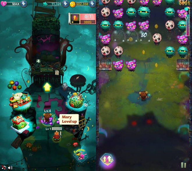 ▲ 종스크롤 슈팅과 3매치 퍼즐의 만남, '도망가, 메리!' (사진출처: 게임인재단 공식 페이스북)