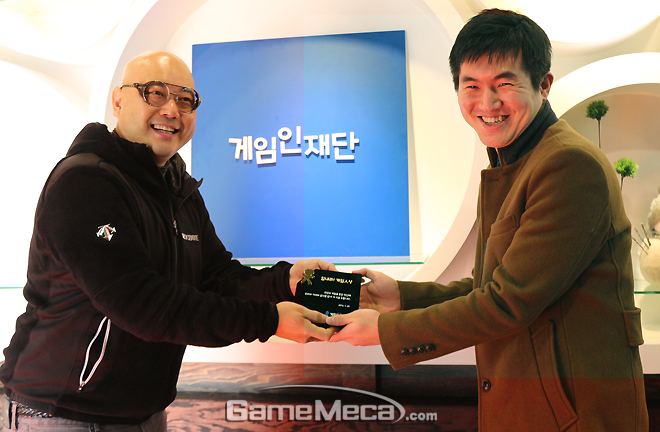 ▲ 게임인재단 남궁훈 이사장과 스튜디오R 이지용 개발자