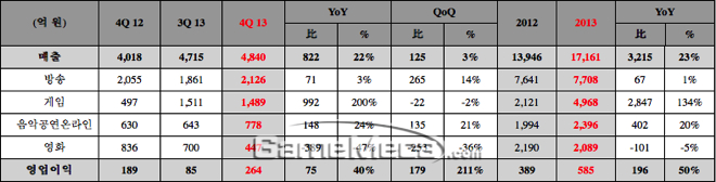 ▲ CJ E&M 2013년 실적 (자료제공: 넷마블)