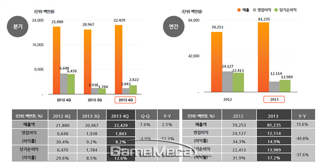 ▲ 게임빌 2013년 4분기 실적 및 연간 매출 (자료제공: 게임빌)
