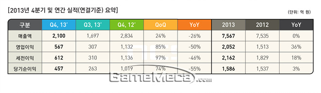 ▲ 엔씨소프트 2013년 실적 결산 (자료제공: 엔씨소프트)
