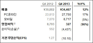 넥슨 일본법인이 13일 2013년 4분기 및 연간 실적(연결기준)을 발표했다.