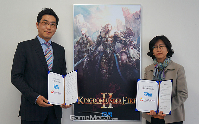 대규모 부대전투를 특징으로 하는 온라인 게임 '킹덤언더파이어2'의 개발사 블루사이드는 연기자 매니지먼트사 올라운드 엔터테인먼트와 업무협약을 체결했다고 밝혔다.