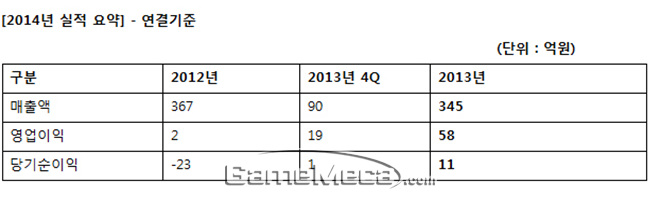 ▲ 와이디온라인 2013년 실적 결산 (자료제공: 와이디온라인)