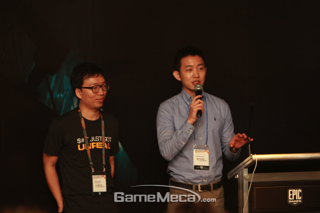 ▲ 데모 플레이를 선보인 에픽게임스 코리아 신광섭 과장(좌), 박상철 지사장(우)