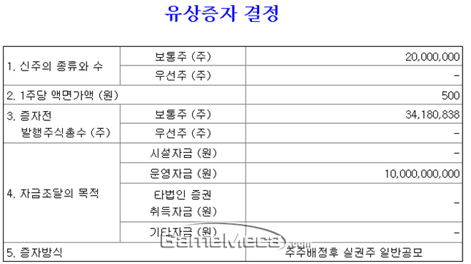 ▲ 바른손게임즈가 유상증자를 결정했다 (출처: 전자공시시스템)