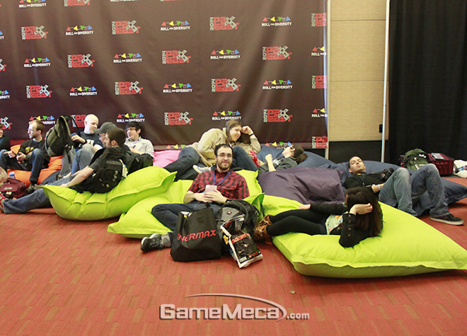 PAX의 또 다른 특징은 ‘장소를 안 가리는 게이밍’이다. 잘 알려져 있다시피 PAX에는 플랫폼 별로 프리 플레이 존이 마련되어 있다. PS3나 Xbox360같은 거치형 콘솔은 물론 PC와 휴대용 콘솔, 그리고 테이블탑 게임 전용 공간까지 각각 준비된 것이 특징이다. 특히 휴대용 콘솔 프리 플레이 존은 커다란 쿠션을 배치해, 참가자들이 편하게 누워서 게임을 할 수 있도록 했다.