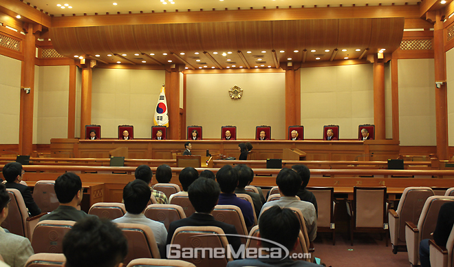 ▲ 셧다운제 헌법소원 판결이 진행된 헌법재판소 대심판정 현장