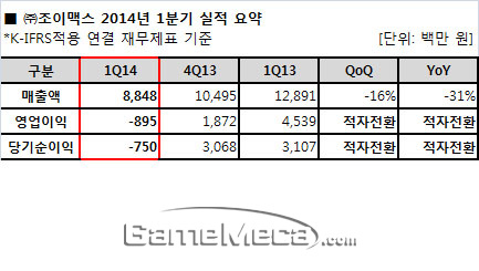 ▲ 조이맥스 2014년 1분기 실적표 (도표제공: 조이맥스)