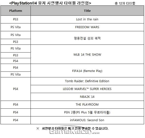 ▲ '굿게임쇼 코리아 2014'에 출품되는 SCEK 타이틀 목록 (도표제공: SCEK)