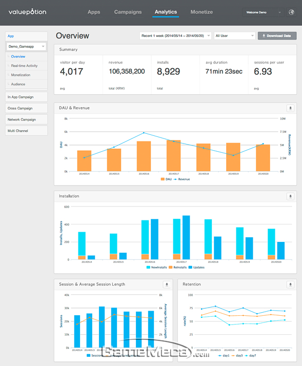▲ 모바일게임 분석 및 마케팅 플랫폼 '밸류포션' (사진제공: 다음커뮤니케이션)
