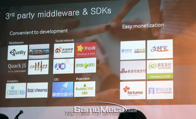 또한 윈도우 플랫폼은 윈도우폰과 서피스, 윈도우 PC, Xbox One에서도 구동된다. 이로 인해 크로스플랫폼 개발이 용이한 것이 장점이라고 MS차이나 조립위 에반젤리스트는 설명했다.