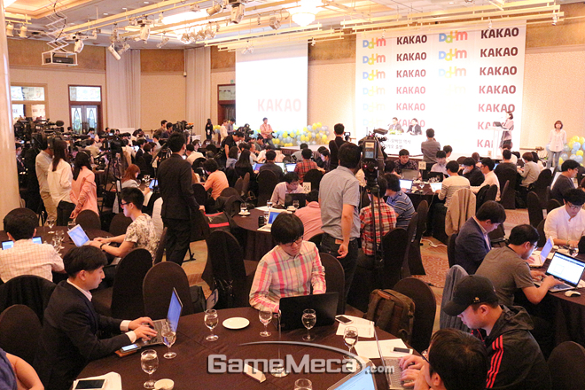 이번 간담회는 다소 급작스럽게 결정되었다. 지난 주말 다음과 카카오의 합병설이 터진 이후, 양사는 26일 오전 보도자료를 통해 합병 사실을 알렸다. 기자간담회 장소와 시간은 행사 시작 3시간 전에야 비로소 공지됐다. 그만큼 급작스러운 발표였다. 기자간담회가 열린 서울 시청역 프라자호텔 그랜드볼룸에는 40여개의 테이블이 가득 찰 정도로 많은 언론 및 업체 관계자들이 방문, 인산인해를 이뤘다.