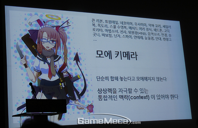 지난 2월에 출시된 모바일게임 '큐라레: 마법 도서관(이하 큐라레)'를 개발한 IO스튜디오의 김용하 PD는 경력이 화려하다. '마비노기', '마비노기 영웅전'을 기획한 그는 '큐라레'를 통해 '덕업일치(덕심과 업을 일치시킨다)'의 길을 걷고 있다고 게임메카의 인터뷰를 통해 밝히기도 했다. 그렇다면 김용하 PD가 정의하는 '모에'란 과연 무엇일까? 김 PD의 이색 '모에론'을 NDC 14를 통해 들어볼 수 있었다.