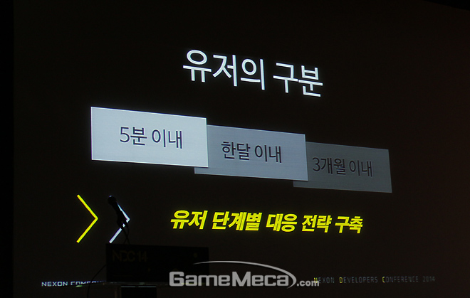 5월 28일, NDC 14에서 김태곤 상무는 '영웅의군단 사례를 통해 본 모바일 MMORPG 만들기'라는 주제로 강연을 진행했다. 김 상무가 강조한 것은 유저를 5분, 1달, 3개월 단위로 단계적으로 사로잡는 전략을 마련해야 한다는 것이다. 김태곤 상무는 "영웅의군단을 기획하며 가장 먼저 시작한 것은 유저를 구분하는 작업이었다. 그 기준을 5분, 1달, 3개월로 나눴다. 5분은 이제 막 게임을 시작한 유저, 1달은 어느 정도 게임에 익숙해진 유저, 3개월은 완전히 게임을 깨친 사람들이다"라고 말했다.