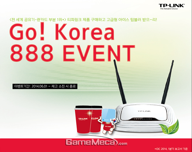 티피링크는 다가오는 브라질 월드컵의 한국의 8강 진출을 기원하는 ‘Go! Korea 888 Event’를 개최한다고 28일 밝혔다.