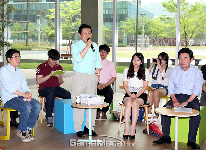 ▲ NHN엔터테인먼트에서 열린 타운홀미팅에 참석한 전병헌 의원 (사진제공: 전병헌 의원실)
