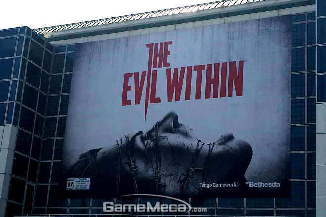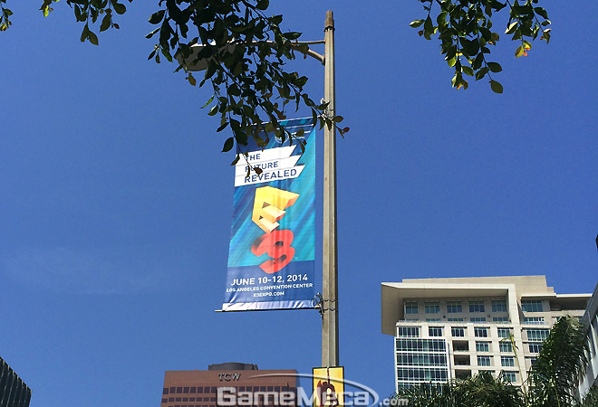 ▲ 주변에 E3 2014 개막을 알리는 현수막이 걸려 있다