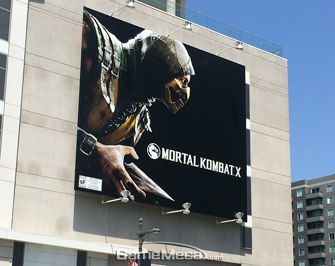 ▲ 주변 건물에도 이러한 대형 현수막이 걸려 있다, 올해 E3 관심작 중 하나인 '모탈 컴뱃 X'