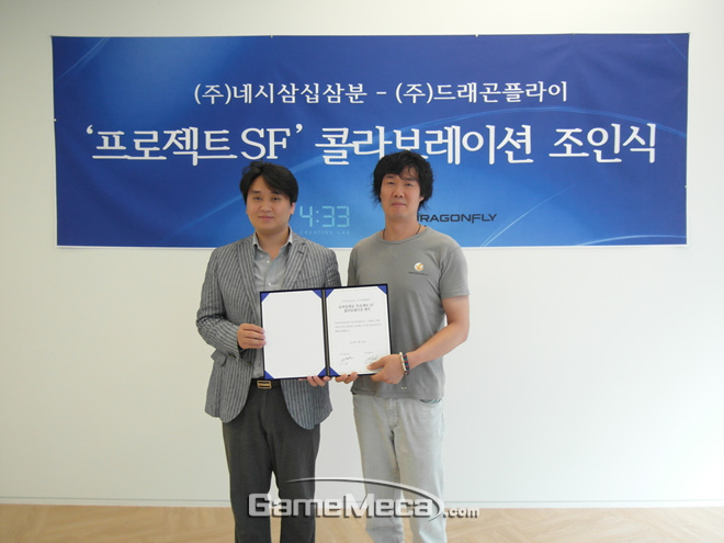 양사는 7월 30일 드래곤플라이 상암동 사옥에서 만나 ‘프로젝트 SF’에 대한 콜라보레이션 조인식을 진행하고 향후 프로젝트 개발과 서비스에 있어 적극적인 상호 협조와 전폭적인 지원을 약속했다.