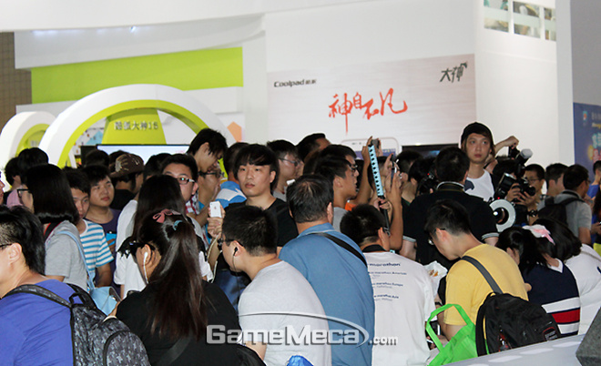 차이나조이 2014의 분위기는 말 그대로 뜨거웠다. 개막식이 열리기 전부터 행사장 안은 물론 들어가는 입구까지 줄이 길게 늘어설 정도로 참가자들이 끊이지 않고 밀려 들어왔다. 한꺼번에 너무 많은 사람이 입장한 탓에, 행사장 내부는 걸어다니기가 곤란할 정도로 붐볐다. 통로가 좁고, 부스가 서로 밀착해있는 내부 구조는 상황을 악화시켰다.