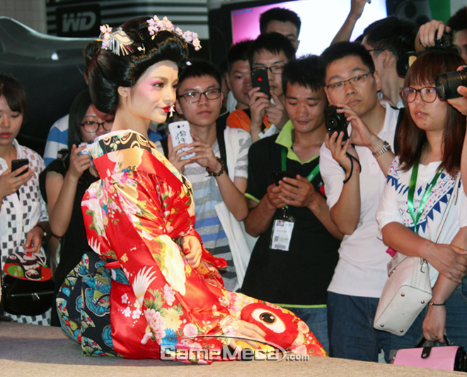 공간에 비해 관람객이 너무 많은 차이나조이는 잠깐 보고 지나갈 수 있는 이벤트 위주로 부스를 운영하는 경우가 많다. 상황이 이렇다 보니, 한눈에 시선을 잡아끌기 위해 쇼걸을 앞세운 행사가 많았다. 물론 관심을 끄는데는 성공했으나, 게임을 보러 온 것인지 아니면 모델의 사진을 찍기 위해서 온 것인지, 주객이 바뀐 상황이 씁쓸하게 느껴졌다.