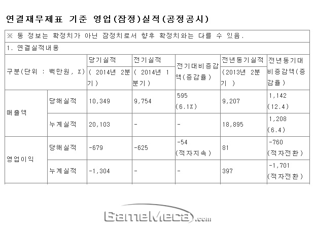 ▲ 이스트소프트가 공시한 2014년 상반기 잠정실적
