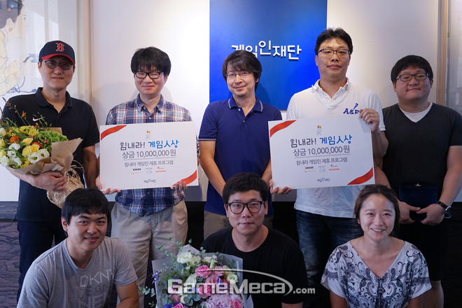 재단법인 게임인재단은 12일(화), 경기도 판교 게임인재단에서 ‘제 5회 힘내라 게임인상’ 시상식을 갖고, 수상작을 배출한 개발사 '비주얼큐브'와 '앱플러스'에게 상패를 전달했다.