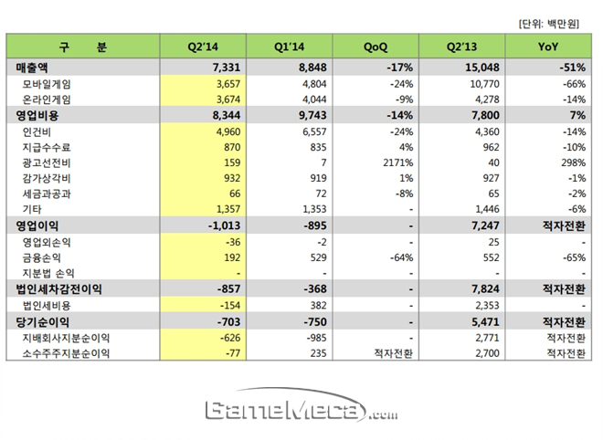 ▲ 조이맥스 2014년 2분기 실적 (사진제공: 조이맥스)