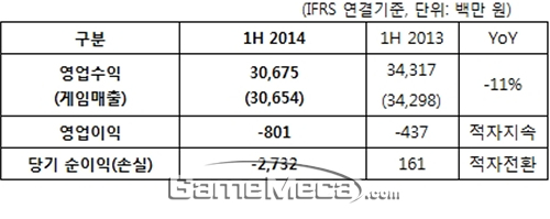 ▲ 웹젠의 2014년 상반기 실적 요약표 (도표제공: 웹젠)
