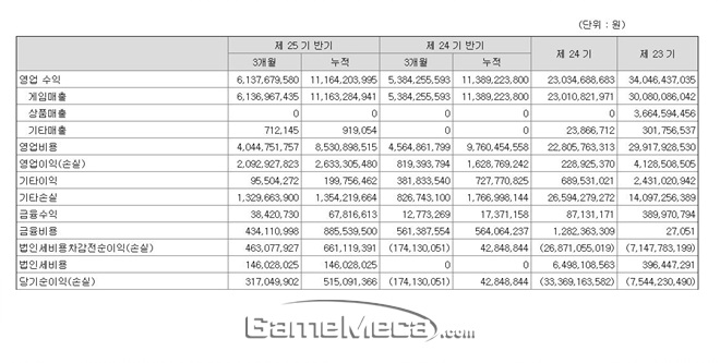 매출액은 전년 동기 대비 113억 원에서 2억 원 감소한 수치지만 영업이익은 16억 원이었던 전년 동기에서 10억 원 올랐다. 또 당기순이익은 4000만 원이었던 전년 동기에 비해 크게 올랐다.