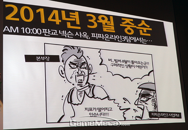 같은 듯 미묘하게 다른 두 직군의 차이는 실제 업무에 투입됐을 때 극명하게 드러난다. 이 본부장은 이에 대해 ‘피파 온라인 3’ 만우절 이벤트를 준비했던 시기의 예를 들어 설명했다. 당시 사업PM은 ‘피파 온라인 3’ 유저 지표가 떨어지는 현상을 포착한 후, 이를 만회할 방법으로 방송인 김흥국을 선수로 추가하는 방안을 냈다. 더불어 해당 이벤트의 필요성을 ‘피파 온라인 3’의 개발진에게 설명하고, 개발 요구사항과 캐릭터 특징을 설계해 전달하는 역할을 맡았다.