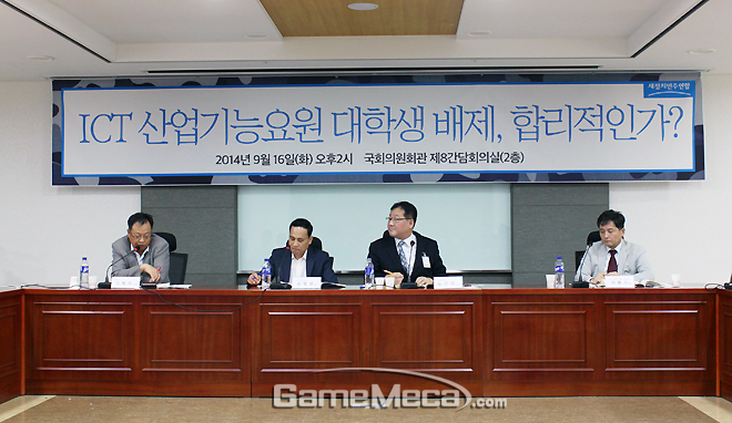 전병헌 의원과 김광진 의원은 16일, 국회 의원회관 제 8간담회실에서 ‘ICT 산업기능요원 대학생 배제 합리적인가?’를 주제로 토론회를 개최했다. 이 날 현장에는 찬성 측의 박환수 한국소프트웨어산업협회 산업정책실장과 신화수 전자신문 논설위원, 그리고 반대 측의 병무청 권영규 산업지원과장이 토론자로, 노민선 중소기업연구원 연구위원이 좌장으로 참석했다. 여기에 카이스트, 중앙대 등 대학생들이 참여해 다양한 의견을 개진했다.