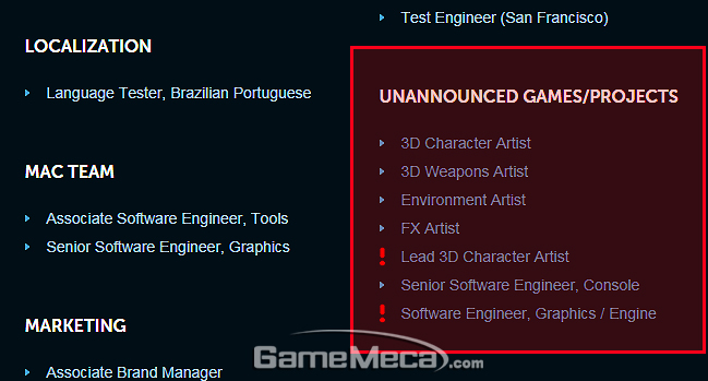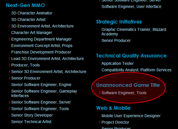 각 항목별 세부 설명에는 ‘블리자드의 차기 대작’이나 ‘자사의 차기 에픽 타이틀’, ‘업계에 반향을 일으킬 게임 경험을 창조할’ 등의 표현이 들어가 있다. 여기에 수석 소프트웨어 엔지니어는 직종 옆에 ‘콘솔’이 붙어 있으며, ‘다양한 플랫폼을 기반으로 한 시스템 제작을 책임진다’는 문구가 들어있다. 쉽게 말해, 멀티플랫폼 타이틀 개발을 맡을 책임자라는 것이다.